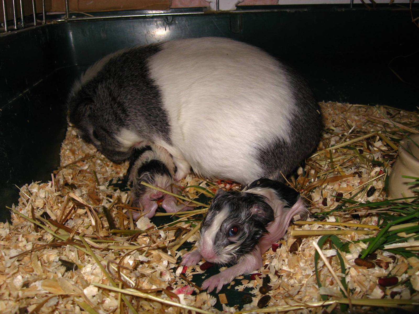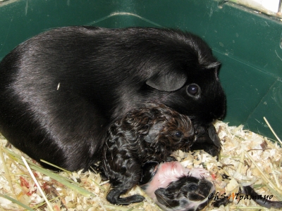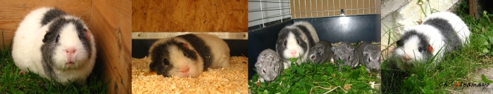 10. 5. 2015 - Po krátké odmlce trocha radosti z morčecího světa: narodil se vrh W - Valentýnčina vnoučátka. Maminkou je Konvalinka Alpamayo, dcera zesnulé Valentýnky. Ve vrhu jsou 4 miminka a samé holky! Dokonce dvě saténky.