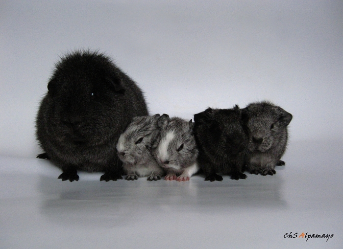 Morčátka ke mně přišla v roce 2010, jako 2 mazlinky - Rozárka a Valentýnka, a naprosto mě okouzlila. V roce 2013 jsem si nechala registrovat ChS Alpamayo s cílem chovat aguti stříbrno-bílá morčata. Zhruba před 2 lety jsem o názvu své ChS napsala toto: „Alpamayo je hora v Peru. Vybrala jsem si ji, protože Peru = morčata a já se věnuji horolezectví, tudíž mám k horám blízko. Mimochodem o Alpamayo se říká, že je nejhezčí horou světa - jehlan téměř pravidelný, extrémně příkrý a tudíž náročný na zdolání. Výška 5947 m n. m. Koneckonců dosažení mého cíle v chovu morčat je taky celkem náročný :-D - ještě, že nejde o život…“