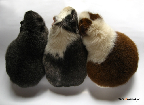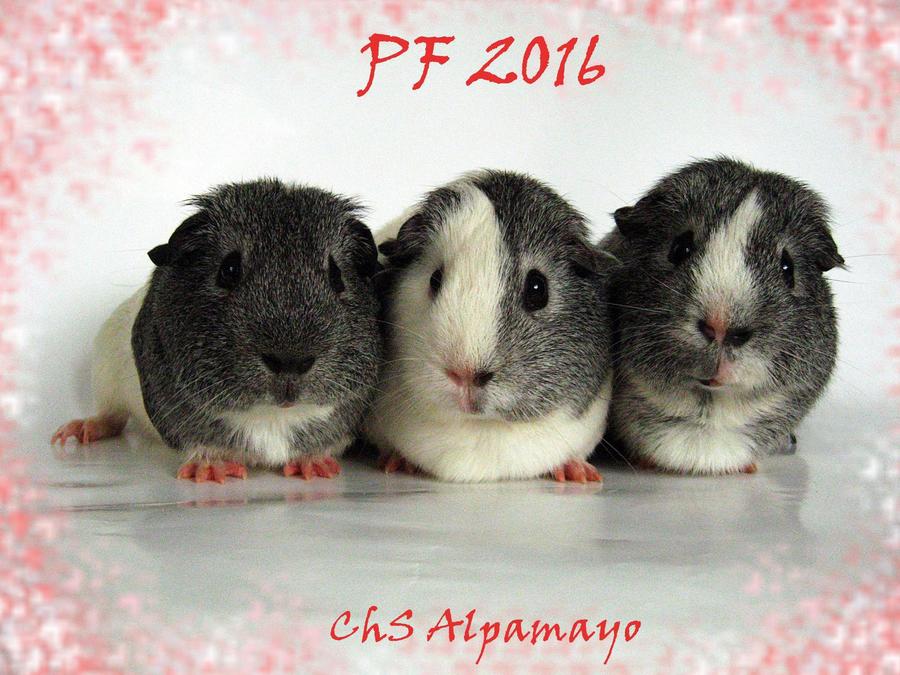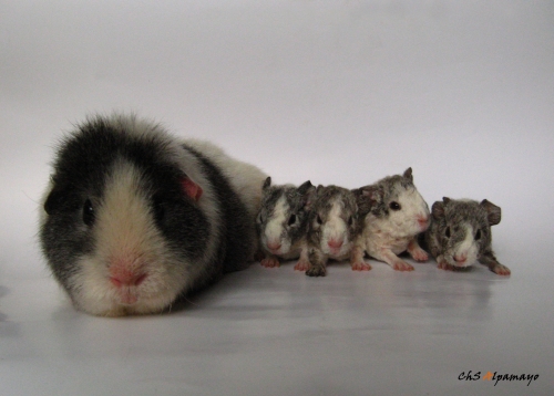 27. 4. 2016 - V pondělí 25.4. na mě vykoukl vrh L1 po Guppy Alpamayo. Narodila se 4 miminka, 2 boubelatí stříbrňáčci a 2 drobnější solidky s bílou packou. Tentokrát vedou holky 3:1. Některá morčátka odešla do nových domovů, jiná to ještě čeká.